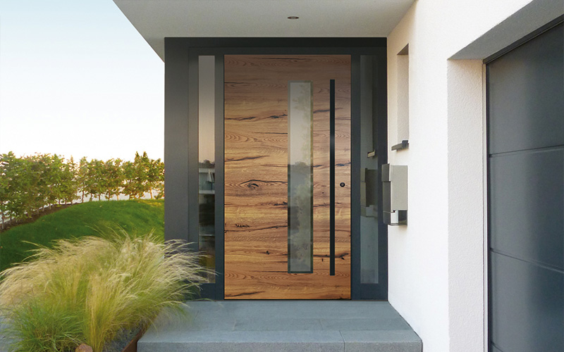 noblesse bietet seine Aluminium-Haustüren in unterschiedlichsten Dekoren an. Neben Designoberflächen in Beton- oder Rostoptik und unzähligen Farbvarianten zählen auch authentische Holzoptiken zum breiten Produktportfolio.