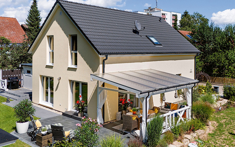 Wer bereits in der Planungsphase genau hinterfragt, was wirklich wichtig ist, kann das persönliche Traumhaus weiterhin verwirklichen. Dabei helfen online konfigurierbare Häuser, wie sie etwa der Fertighaushersteller Danwood anbietet. Schritt für Schritt lassen sich Grundriss, Dachform, Fassade, Fenster, Türen sowie Ausstattungspakete für Innenausstattung und Haustechnik zusammenstellen. Jede Auswahl aktualisiert den Preis, sodass die Bauinteressenten jederzeitige Transparenz und Kontrolle über das Budget haben. Das Programm Danwood Family wurde ursprünglich für junge Familien entwickelt, die hart kalkulieren und dennoch nicht auf Qualität, Wohnkomfort und ein schönes Ambiente verzichten wollen, und hält heute ebenso für Singles und Paare vorkonfektionierte Angebote bereit. Die Häuser werden fast schlüsselfertig angeboten. Bauherren haben somit Möglichkeit, bei Wänden, Fußböden und Innentüren die sogenannte Muskelhypothek einzubringen und Arbeiten teilweise selbst zu erledigen, was mit ein wenig Geschick und Geduld weitere Kosten spart. Da aber nicht jeder Häuslebauer auch fliesen kann, sind die Bäder bereits fertiggestellt – mit den vorab konfigurierten Fliesen und Sanitärobjekten.