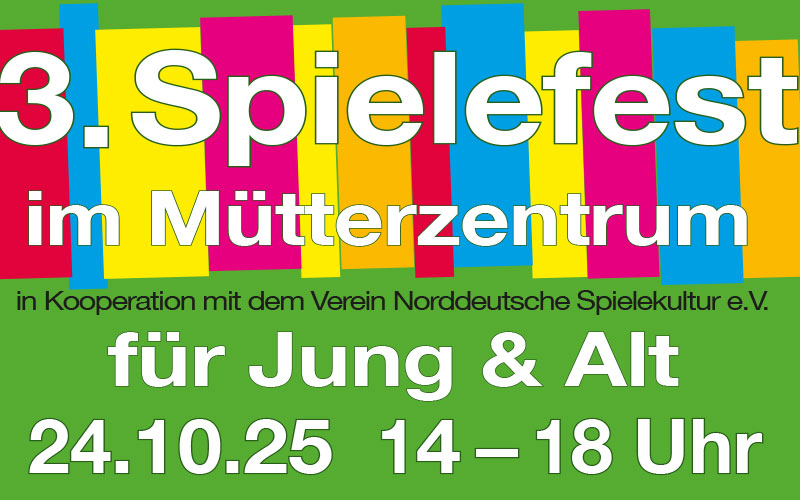 Zum 3. Mal findet in Kooperation mit dem Verein Norddeutsche Spielekultur e.V. ein Spielefest im Mütterzentrum statt.