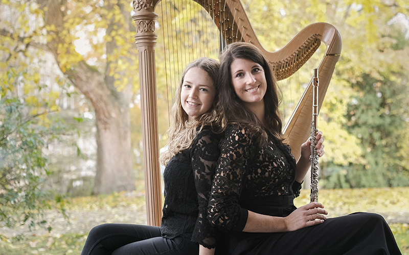 Das junge Ensemble „Duo Concento“ mit den beiden Musikerinnen Lea Maria Löffler und Myriam Ghani  spielt in der klangvollen Besetzung Querflöte und Harfe. Die beiden ehemaligen Stipendiatinnen des Deutschen Musikrats waren 2020 von der Deutschen Botschaft zu Konzertreisen nach Saudi-Arabien eingeladen und nahmen Werke junger Komponisten gemeinsam mit dem HR auf. Die beiden hochbegabten und mit deutschen wie internationalen Preisen ausgezeichneten Solistinnen Lea Maria Löffler und Myriam Ghani laden herzlich ins Schloss Salder ein: „Kommen Sie mit uns auf eine Weltreise! – Nicht in 90 Tagen, sondern in 90 Minuten werden wir naheliegende Länder wie Frankreich, Spanien und Griechenland bereisen. Aber auch Fernes aus Russland, Unbekanntes aus dem Baltikum sowie Klangvolles aus Japan wird ertönen, bis hin zur temperamentvollen Musik Ungarns. Es erwartet Sie ein musikalisch bunter Abend mit Moderation, der einem erfrischenden Kurzurlaub in ferne Länder gleicht.“