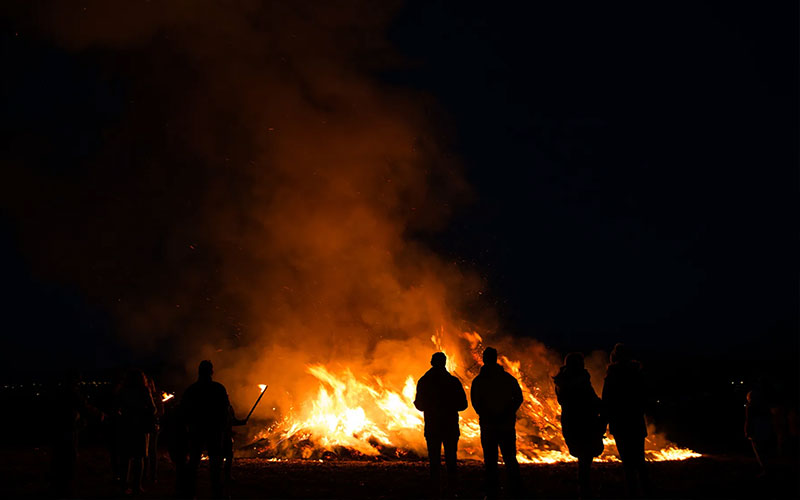 - Das Feuer muss innerhalb weniger Stunden (in der Regel von Einbruch der Dämmerung bis Mitternacht) vollständig abgebrannt sein und ist ständig unter Aufsicht zu halten; eine Brandsicherheitswache ist zu stellen.