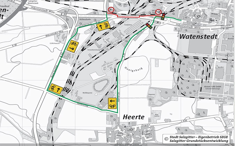 Radfahrer werden gebeten die Umleitung über die Nord-Süd-Straße, Diebesstieg und Heerter Straße (K20) und zurück zu nutzen.